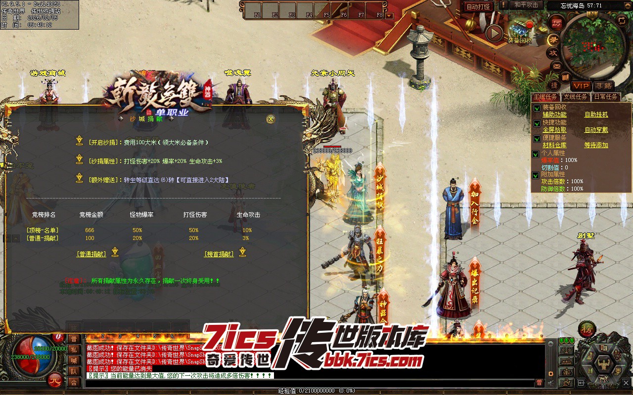 回馈 狂暴 普通沙捐+榜首捐献 手动关闭破盾 开启包月刀群怪
