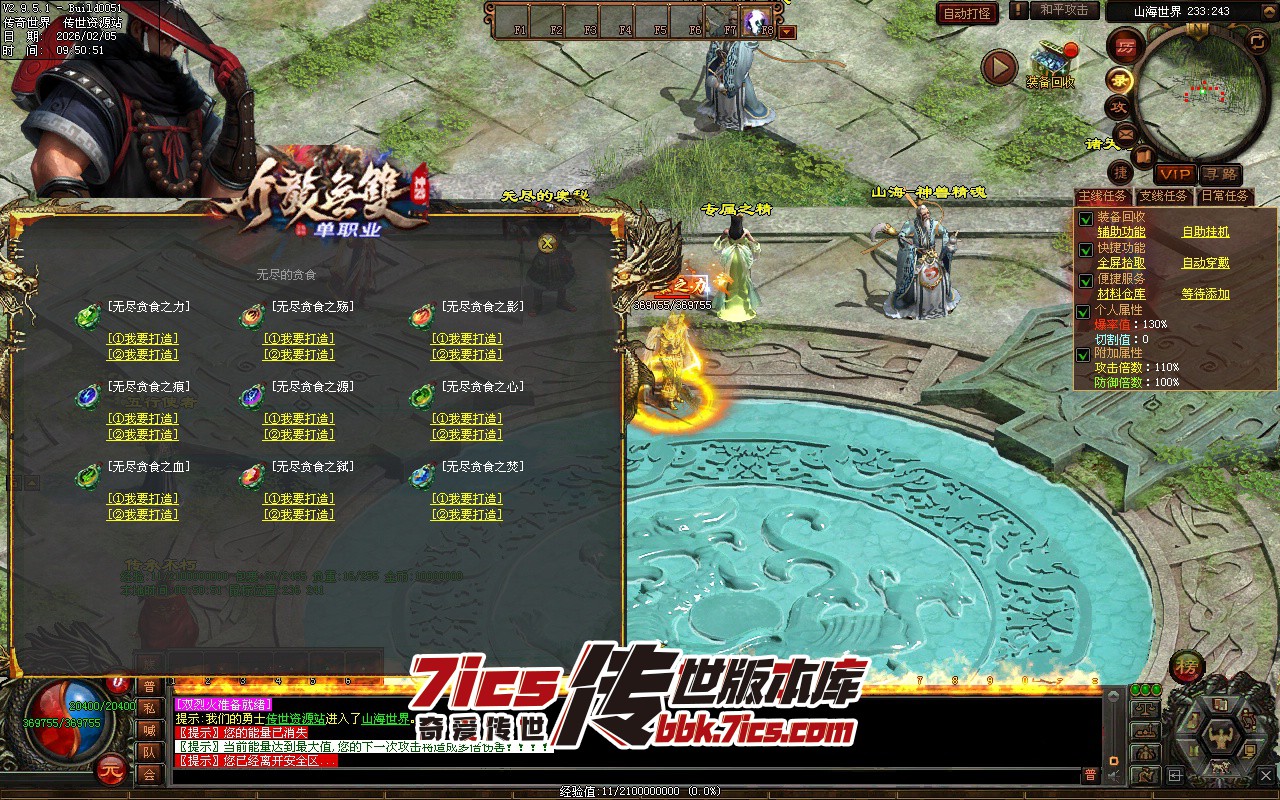 无尽贪婪 世界·饕餮 每吞噬1件三大陆专属装备,可提高武器50点攻击力,上限2000点