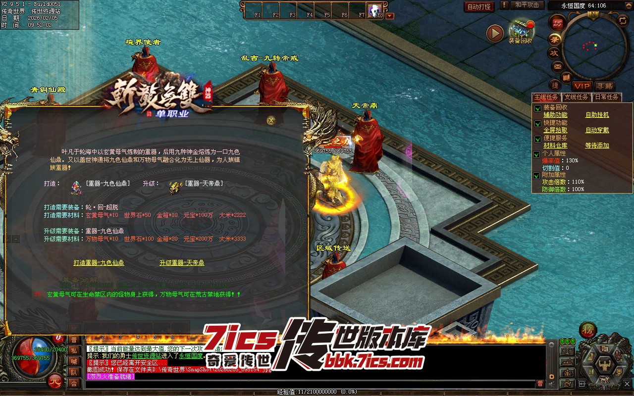 然后进2大陆 天界至宝 买35个精华 合成满切割