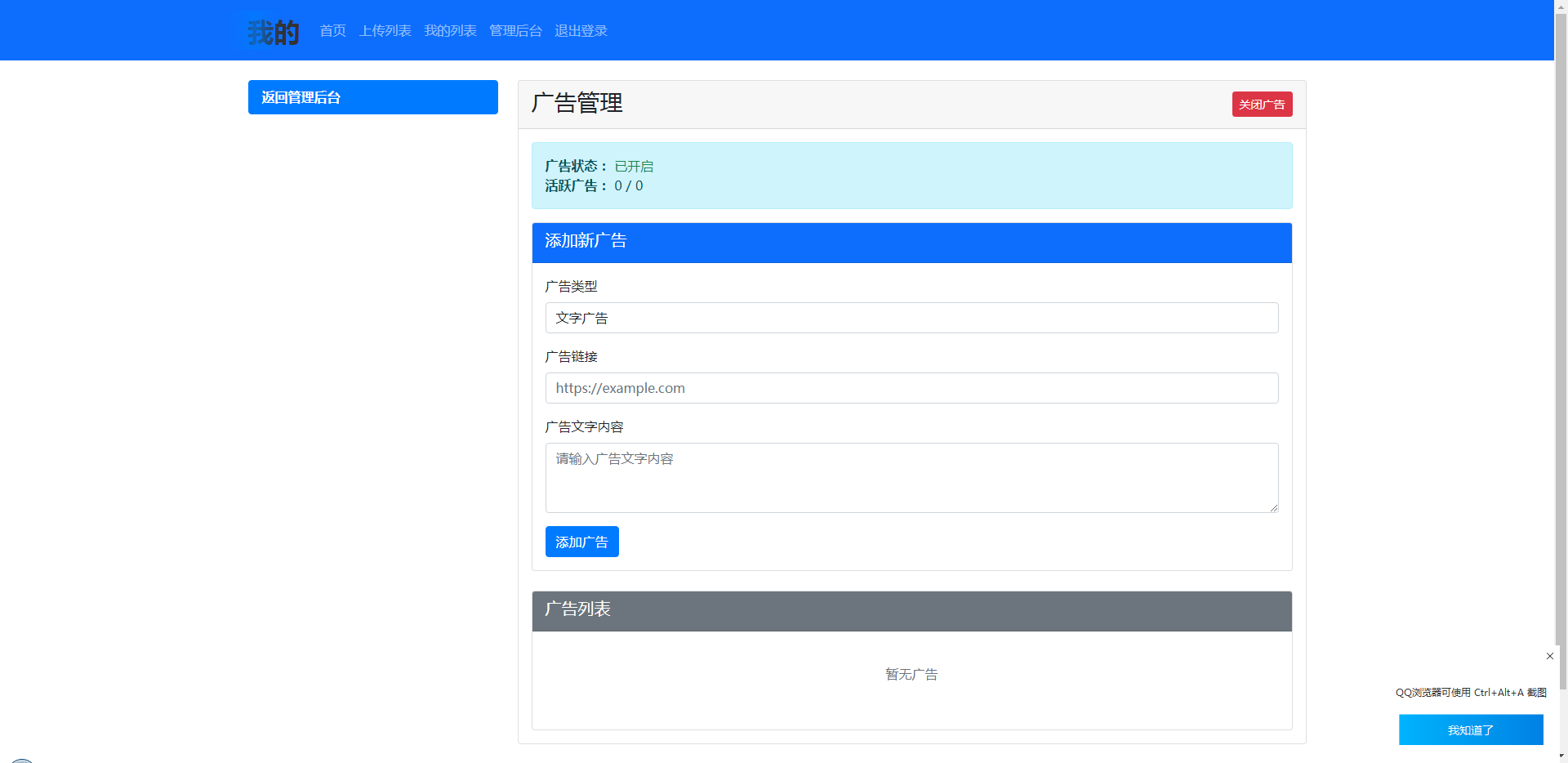 多功能用户上传可自助修改的列表空间源码-后台可投放广告