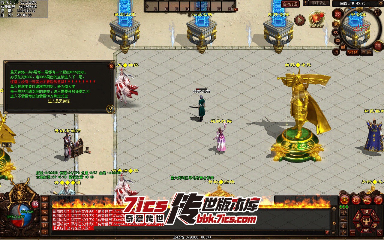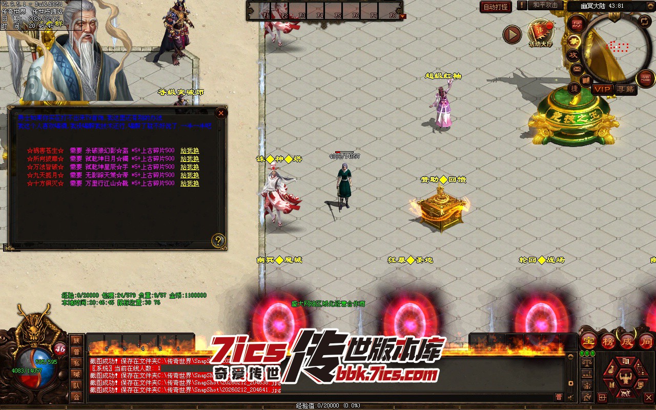 然后就是盘古之境 这个地图说是本服终极地图也不为过 玩家到毕业也离不开这个地图 盘古的每个黑色BOSS都是必报上古卷轴的 具体用法去看剑甲NPC 这里不过多介绍 剑甲NPC是盘古之境核心所在