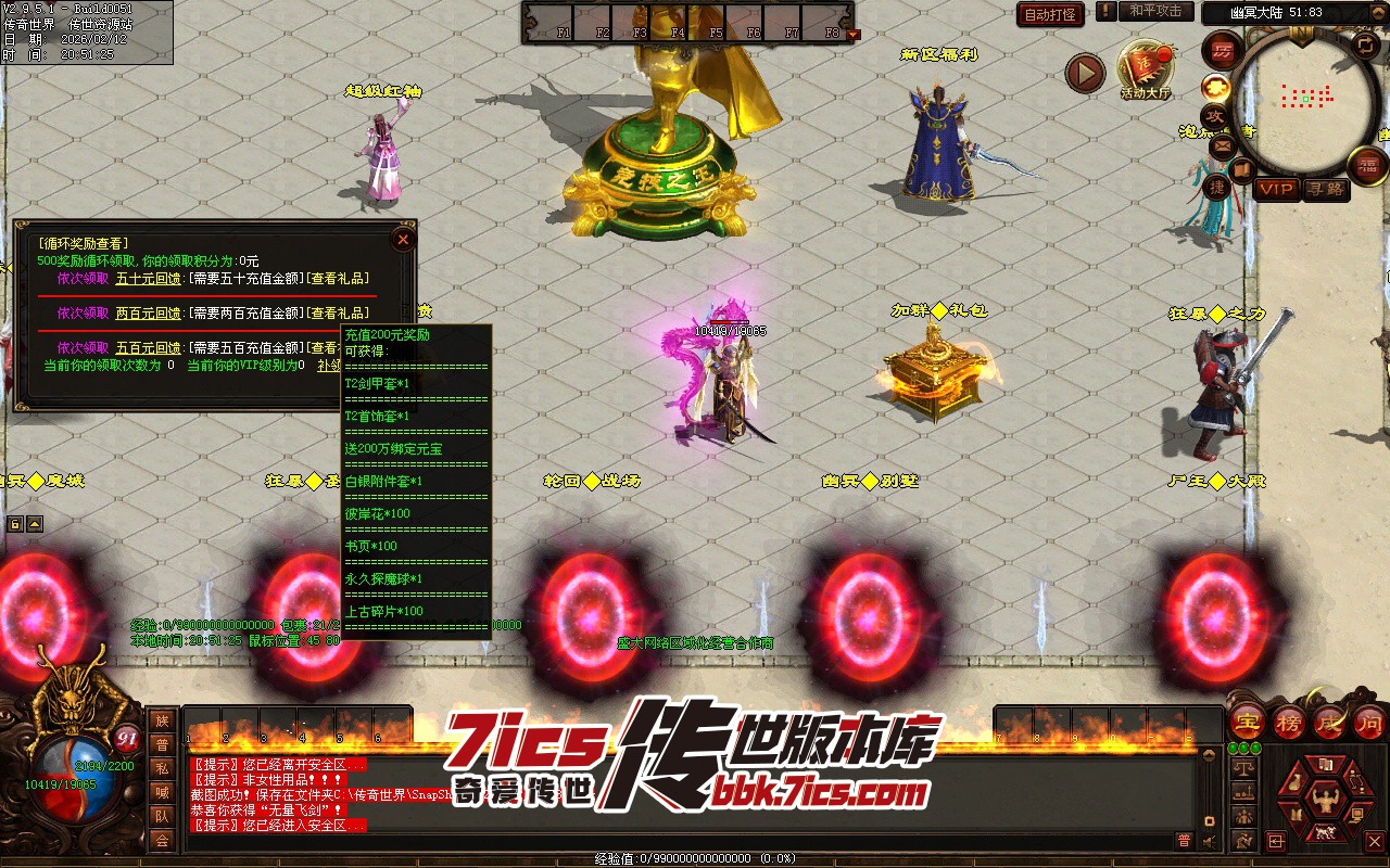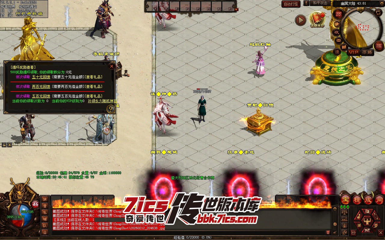 充钱玩家优先考虑升级VIP等级加怪物爆率,升级VIP循环领取500回馈充值每领一次加一级